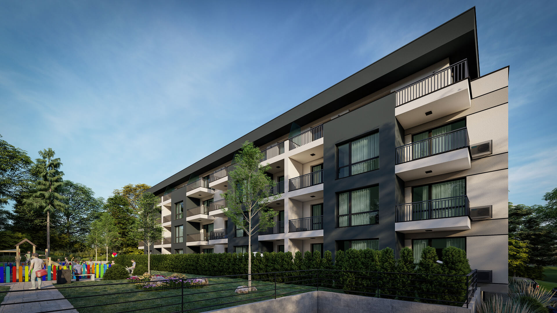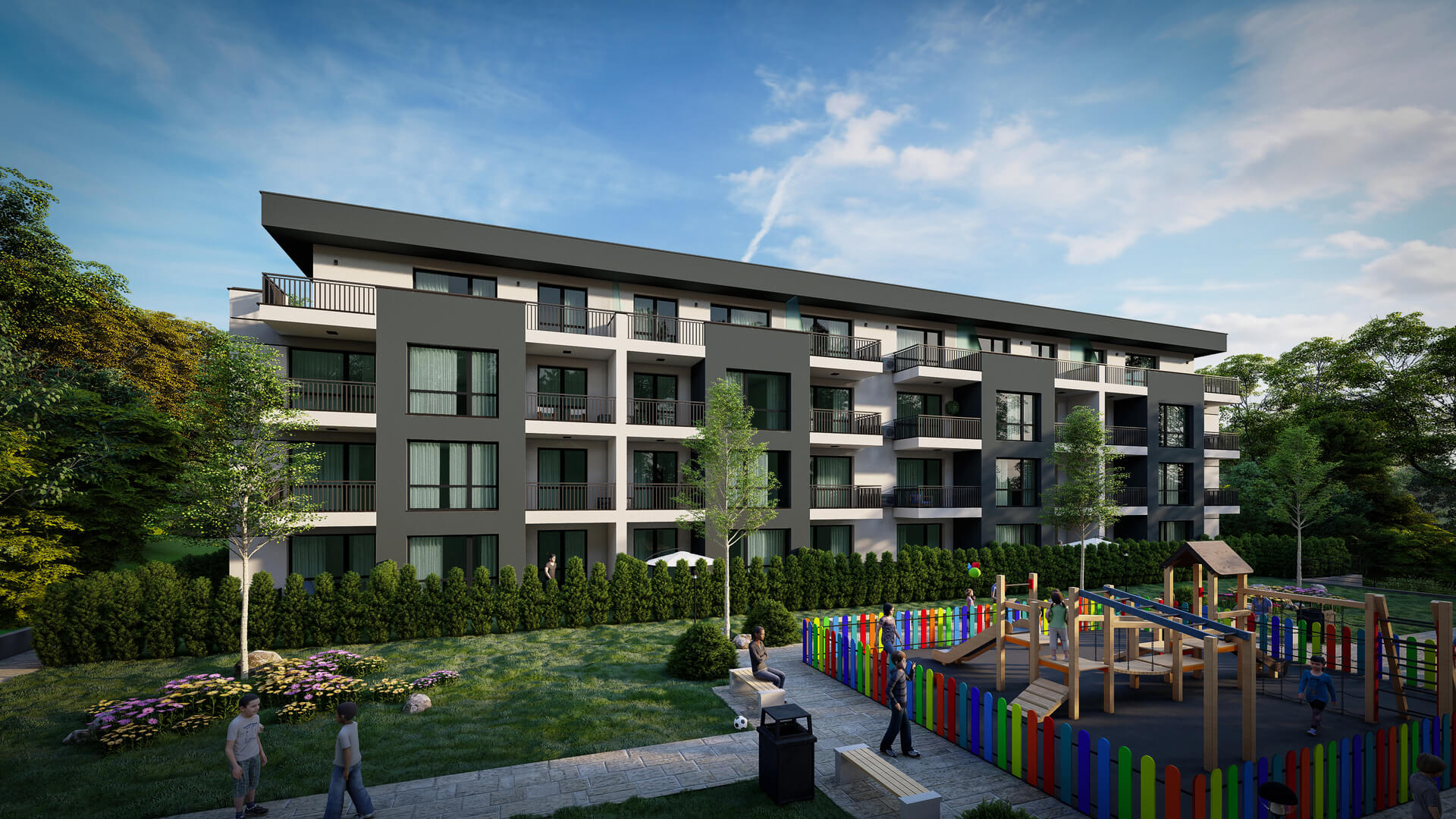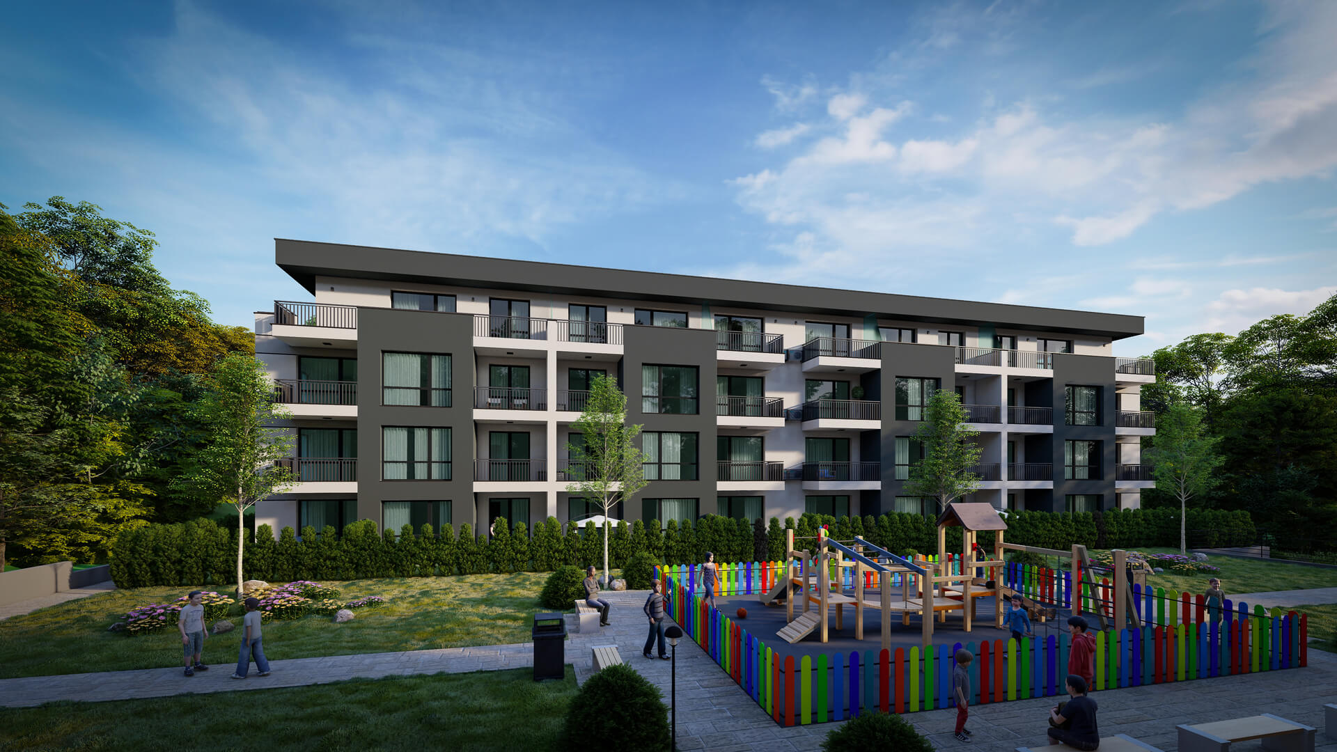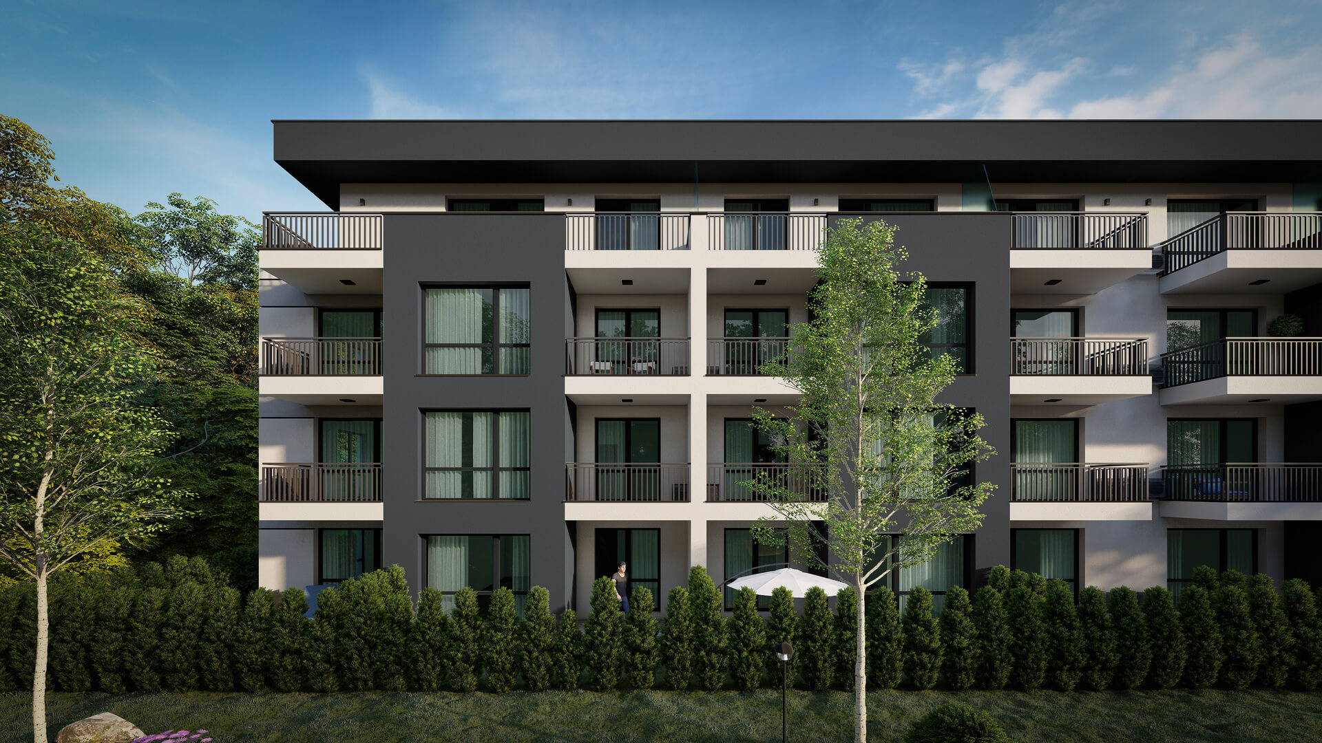 Около жилищната сграда ще бъде изграден богато озеленен двор с детски кът, алеи, пейки и беседка, които в съчетание с боровата гора в съседство осигуряват възможност за пълноценен отдих и разходки сред природата.