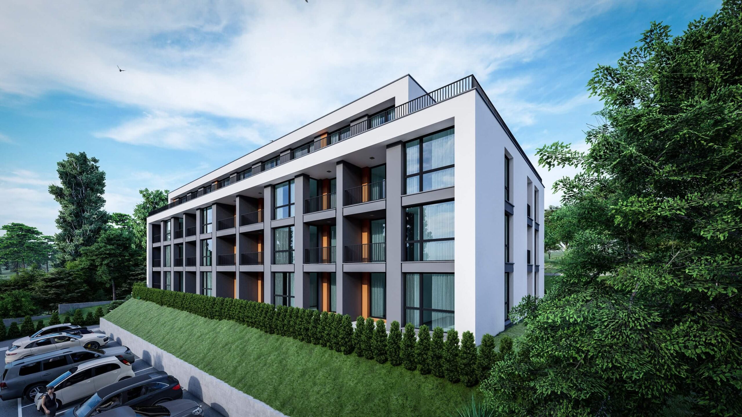 Сграда с модерна визия, разполагаща с 29 панорамни апартамента в местност Пчелина, в непосредствена близост до кв. Възраждане III.